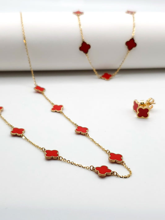 Coral Inlay Clover Bracelet