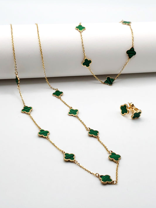 14k Gold Bracelet with Malachite Inlay Clovers